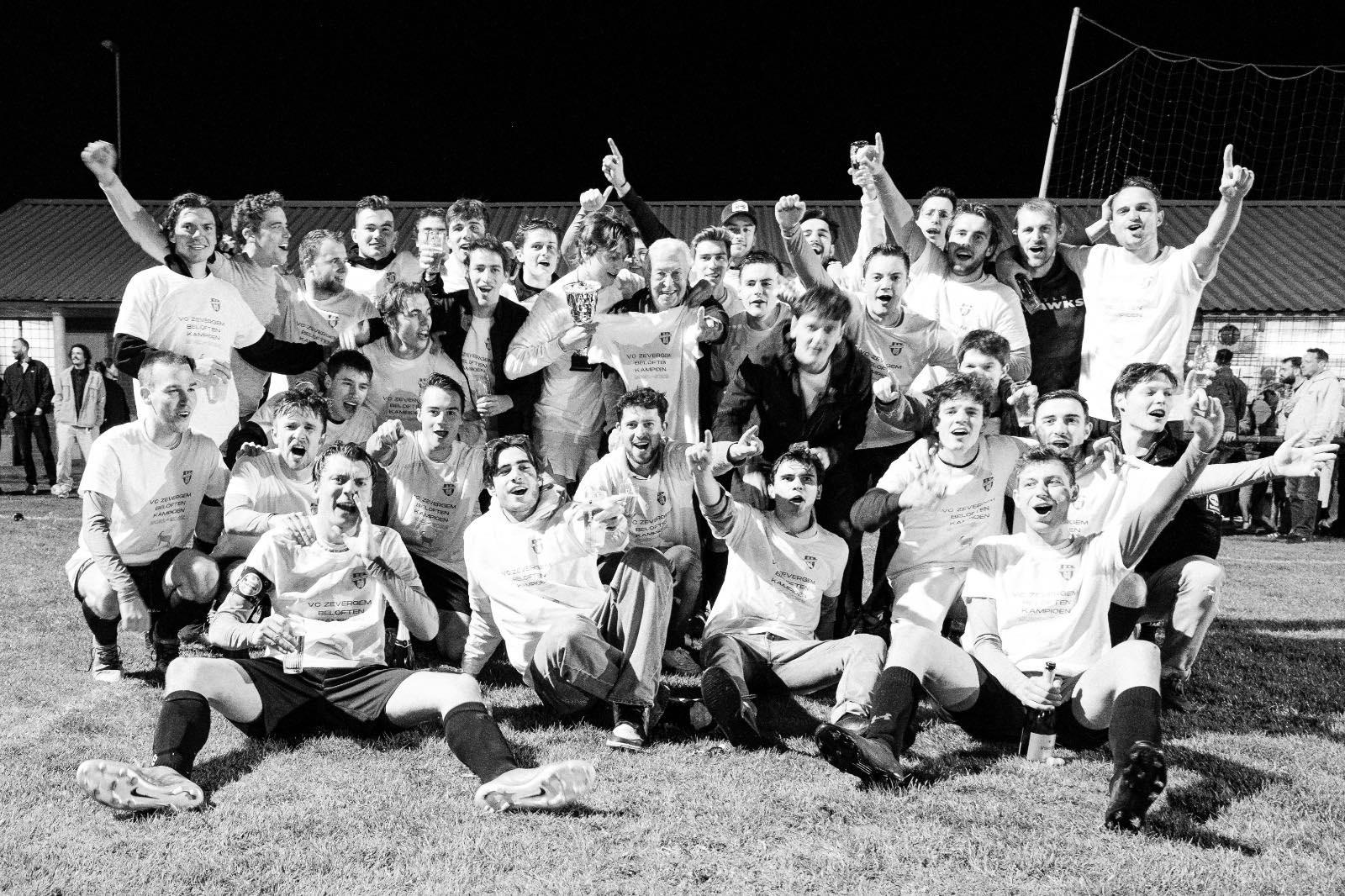 Voor het eerst in de geschiedenis heeft Zevergem Sportief de titel binnengehaald. Bij een gelijkspel tegen onze rechtstreekse concurrenten, Sparta Petegem B, pakten we de titel. Bedankt om ons massaal te steunen in Petegem. Wat heerlijk om ook onze jeugd los te zien gaan langs de zijlijn met hun toeters en bellen en met onze vaste supportersgroep mee te schreeuwen tot het laatste fluitsignaal. Om daarna het veld van Petegem mee te bestormen en vreugdevol in elkaars armen te vallen! Bedankt klein en groot, jong en oud om de mooiste match van ons leven memorabel en onvergetelijk te maken. Wat een feest!!!